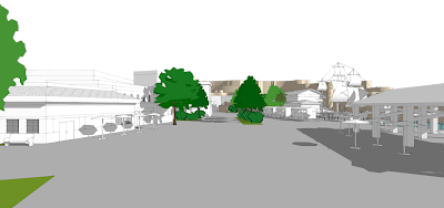 I’ve been working on this park on and off for just about exactly a year. One reason it went so slow was my decision to mock up a model of the entire resort to give an idea of the style and scale. I also developed the site with a probably overkill level of detail, including grading the entire site and including a topo layer on the site plan. Plus I added details such as benches, umbrellas, transformers, and compactors just to give it some realism.